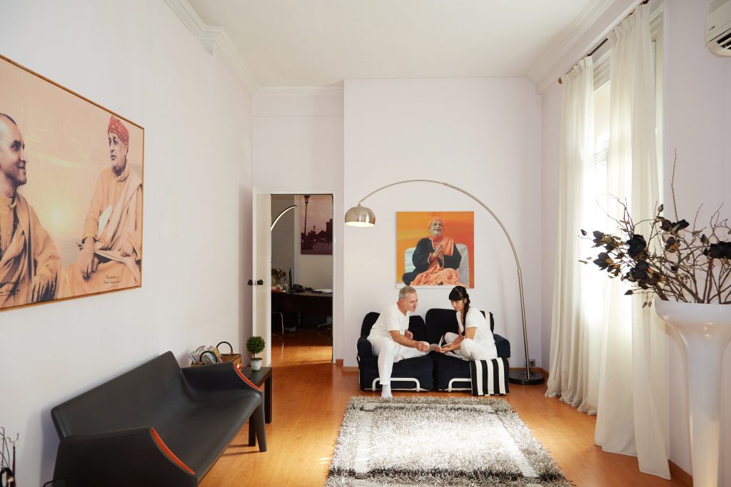 The Satyananda Yoga Meditation Center of Thessaloniki is located in the heart of the city, Proxenou Koromila 1, very close to Aristotelous Square. It is housed on the first floor of a renovated three-store neoclassical building, in a space of 217 square meters. The space combines functionality with aesthetics of austerity and features warm, bright rooms ideal for practicing yoga.