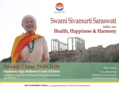 On Sunday 2nd June, Swami Sivamurti Saraswati will be speaking on and answering questions on how to attain three of the most important elements in life: Health, Happiness and Harmony. The venue will be the Satyananda Yoga Meditation Center of Paiania ( situated 3 kilometres from Paiania ashram) where yoga…