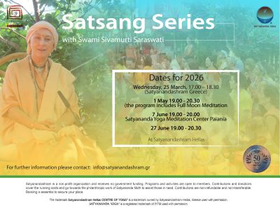 Dates for 2026: 25 March, 17:00 – 18:30 1 May, 19.00 - 20.30 (program includes Full Moon Meditation) 7 June 19.00 - 20.00 (Satyananda Yoga Meditation Center of Paiania) 27 June 19.00 - 20.30 Satsang is being in the company of truth. - Swami Satyananda Saraswati http://www.yogamag.net/archives/2010s/2016/1602/1602stps.html An inspiring new series of…