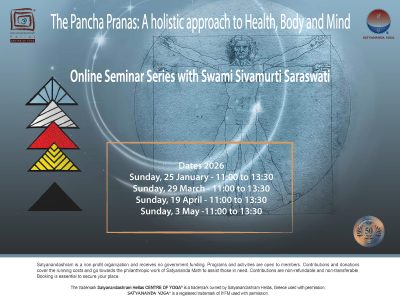 Online Seminar Series with Swami Sivamurti Saraswati 2026 Dates: 25 January · 29 March · 19 April · 3 May Time: 11:00 – 13:30 First Session: Sunday, 25 January 2026 About the Seminar Series All of existence is sustained by a foundational pranic field that permeates everything—known as universal prana, or…