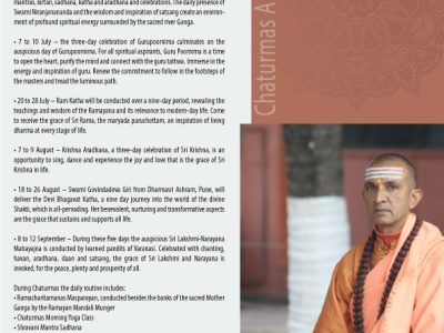 Blessed Self, Hari Om. This year Sannyasa Peeth will be conducting the Vedparayan and Chaturmas anusthana from 23 June to 13 September. The Vedparayan, from 23rd June until the 9th of July, is an extraordinary, not to be missed opportunity to immerse in the sacred experience of shravana, by listening to all four Vedas. Chanted by learned pandits of Varanasi…