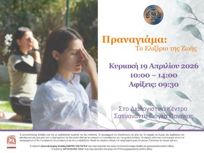 Γλώσσα: Ελληνικά Ελάτε να μοιραστούμε απλές αλλά σημαντικές πρακτικές γιόγκα του συστήματος Σατυανάντα. Θα προσφερθούν πρακτικές Χάθα Γιόγκα, χαλάρωσης, διαλογισμού και άλλες πρακτικές αυτού του συστήματος. Το πρόγραμμα θα πλαισιωθεί από σύντομες ομιλίες από έμπειρους εισηγητές εκπαιδευμένους στο σύστημα Σατυανάντα, οι οποίοι θα σας καθοδηγήσουν για το πώς μπορείτε να…